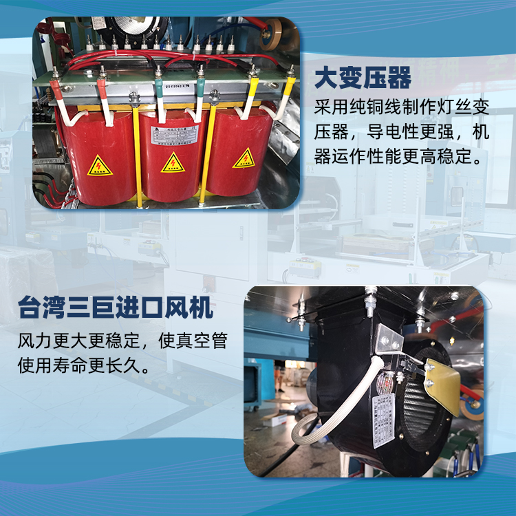 5、進口風(fēng)機,風(fēng)力更大更穩(wěn)定,使真空管使用壽命更長久。