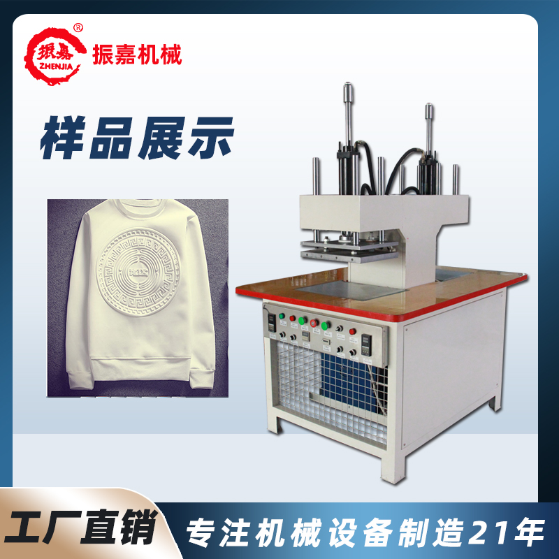 服裝凹凸壓花壓印機適用各種人造皮革和牛仔的凹凸壓花成型適用于T恤的矽膠壓花,毛衣的矽膠壓花,壓痕各種真皮,商標皮的烙印,生產(chǎn)各種液體硅膠的立體商,服裝凹凸壓花機主要用于服裝壓花、牛仔凹凸壓花、鞋材壓花、商標、皮包、運動鞋、工藝禮品、箱包、牛仔服飾