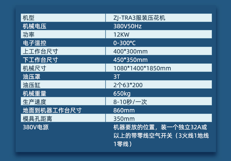 3、 油壓可調(diào)行程,可生產(chǎn)服裝凹凸壓花,因為有下限位。