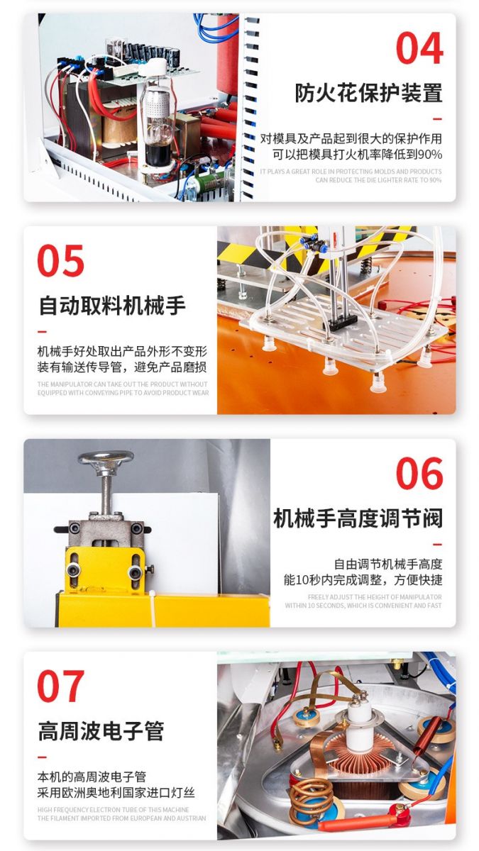 3.全自動(dòng)圓盤(pán)高周波機(jī)采用高Q值電子振蕩管,國(guó)際工業(yè)標(biāo)準(zhǔn)27.12MHz的高周波頻率波段,出力大更穩(wěn)定,輸出率特強(qiáng),能大大降低高周波的熔接時(shí)間,提高產(chǎn)品質(zhì)量及產(chǎn)量。
