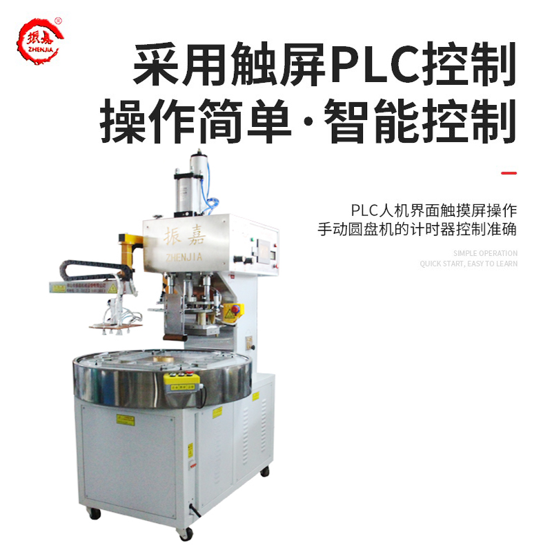 1.全自動(dòng)圓盤(pán)高周波機(jī)結(jié)構(gòu)設(shè)計(jì)為圓盤(pán)式結(jié)構(gòu),可以只需一個(gè)一操作,當(dāng)一個(gè)工位人工取下產(chǎn)品并放置原料時(shí),另一個(gè)工位剛好焊接完成,如此旋轉(zhuǎn)進(jìn)出一個(gè)循環(huán)操作,只需放料,取料由機(jī)械手完成,使人工與機(jī)器做到合理運(yùn)用,要省人力。