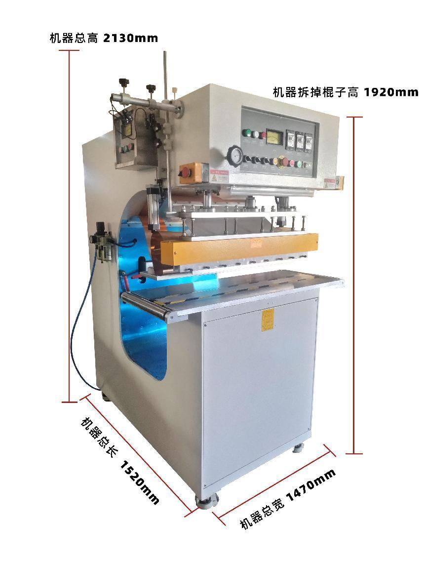 1.每次焊接帆布材料的長度及寬度,均可以通過改變高周波模具的尺寸長短寬度實(shí)現(xiàn)帆布熱合需要。