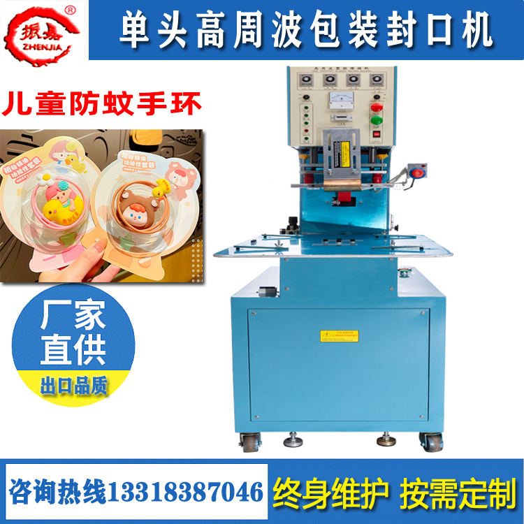 兒童防蚊手環(huán)包裝高頻機(jī)由振嘉機(jī)械研發(fā)生產(chǎn),此機(jī)型號為ZJ-8K-RB適用于兩片吸塑罩泡殼的包裝封口,一張吸塑罩泡殼和一張紙卡的封邊封口粘合。主要用于兒童防蚊手環(huán)包裝、文具用品包裝、、電子產(chǎn)品包裝、MP3、MP4、MP5吸塑包裝、牙刷包裝、牙線包裝、玩具包裝、禮品包裝、五金工具包裝、U盤包裝等吸塑紙卡包裝,也可用于PVC柔軟線膠盒成型,塑料熔接、奇趣蛋、壓花壓字、皮革、PVC加工等用途。