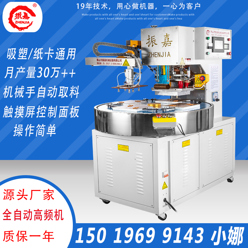 全自動高周波熱合機型號:ZJ-8K-ACRB,此機裝有高敏度5557防火花保護裝置,對高周波模具及生產產品起到很大的保護作用,是一款自動轉盤高周波機,可以單人操作,節(jié)約人工;由振嘉機械設備有限公司高周波生產廠家專業(yè)制造,機器質量已通過歐盟CE質量出口檢測,ISO9001機器質量檢測;并對客戶的樣板提供免費打板打樣,傳授產品生產整過程工序及提供生產方案。