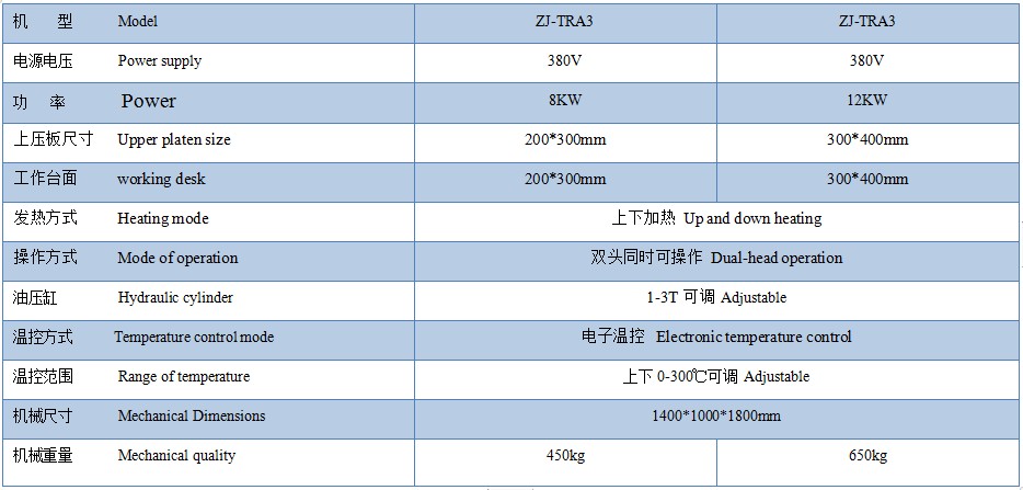 2、 服裝壓花機(jī)雙工位型機(jī)型兩個(gè)工位可以同時(shí)操作