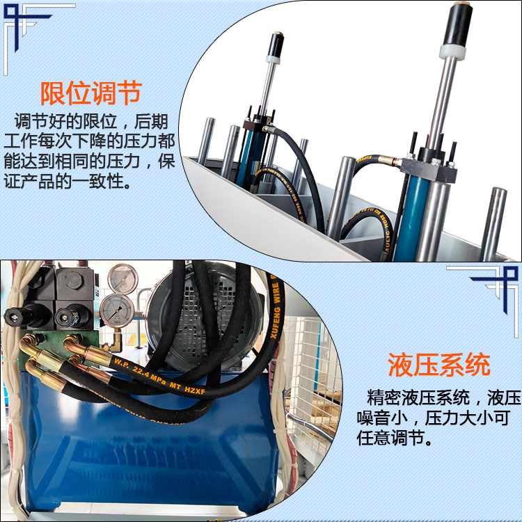 ②放下材料,雙手按下按鈕,機(jī)器模頭自動(dòng)下降,壓好產(chǎn)品模頭自動(dòng)上升。
