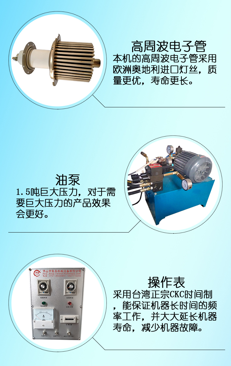 1、皮革壓印高頻機(jī)采用高Q值電子振蕩管,輸出穩(wěn)定可靠。