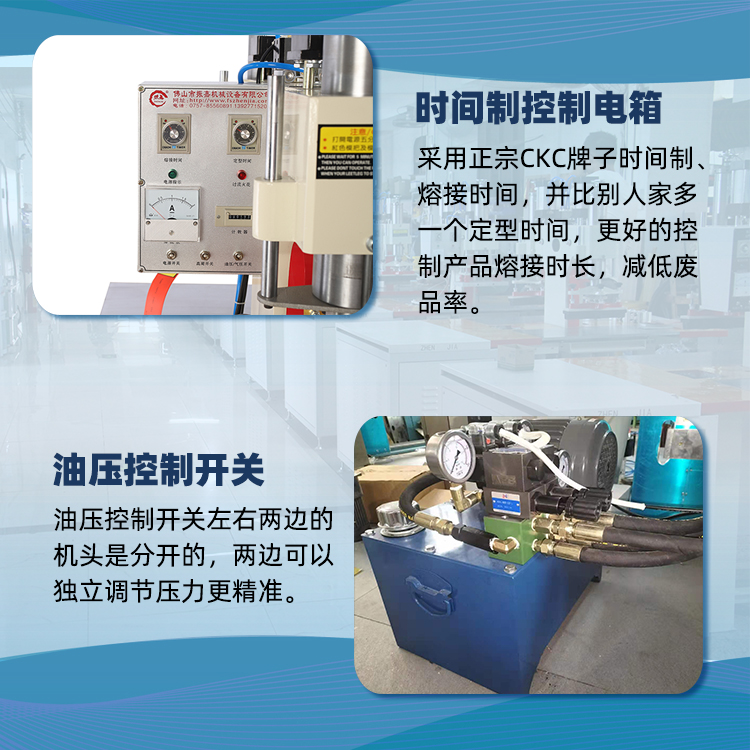 雙頭油壓高周波機封口機:操作工作臺面板分別為機頭的兩邊,操作方式主要是由操作人員右腳踏定位和左腳開關(guān),焊接過程由時間自動控制,左右機頭交替使用。機型主要有ZJ-5K-Y,ZJ-8K-Y,ZJ-10K-Y。