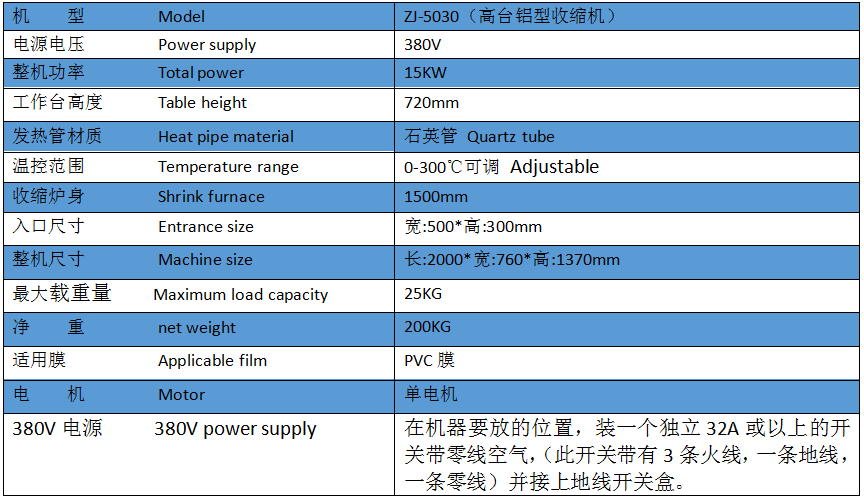1: 5030收縮機(jī)適合鋁型材單支或多支套收縮膜后收縮包裝。