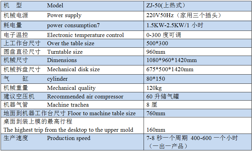 設(shè)備型號(hào):ZJ-50上熱式吸塑封口機(jī)