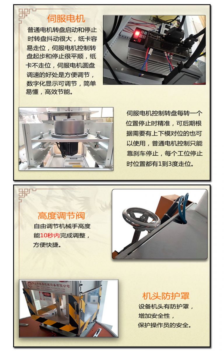 1、機(jī)體用雙條導(dǎo)柱支撐,加大平衡力度,壓板更平直,壓力更穩(wěn)定,使膠罩與紙卡附著力增強(qiáng)。