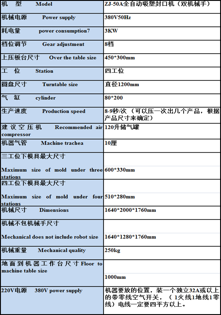 順德五金吸塑包裝機型號為ZJ-50A順德五金吸塑包裝機(雙機械手),全機均為全自動化帶有自動取料及自動取紙卡雙機械手,工作臺可以放置模具數(shù)量為:4套模具,此新一代全自動雙機械手吸塑封口機專為替代傳統(tǒng)手動吸塑封口機和鏈條式吸塑封口機而設(shè)計