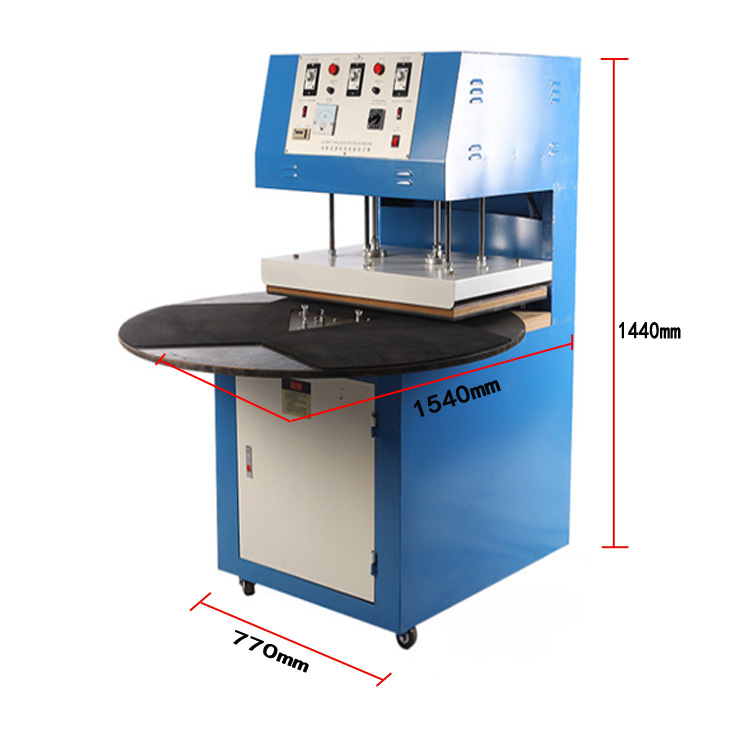 6、2B鉛筆吸塑包裝機逆時針方向推動模臺旋轉(zhuǎn),觀察壓板自動壓下情況是否正常。若無巽常,則可將吸塑件與線卡客觀存安放在電木模上開始試包裝。